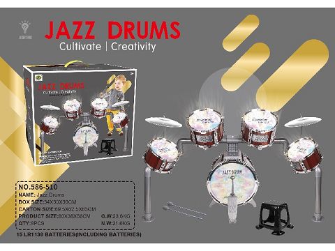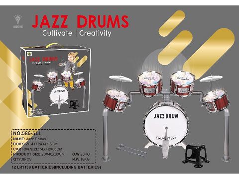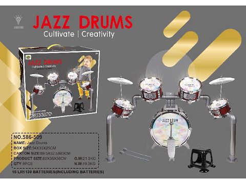 单色5鼓木纹爵士鼓4灯光+带脚方椅(带伸...